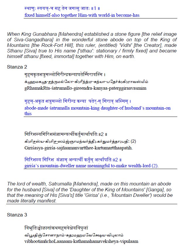 Transliteration and translation of Mahendra Pallava’s inscriptional poem on the pilasters on either side of Gangadhara panel