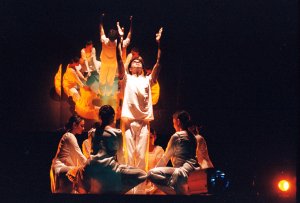 speech and music… With elaborate stage sets and props, the dancers, musicians