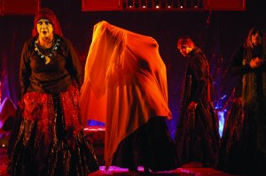 theatrical terms, the structure of the performance is both fluid and non-linear.