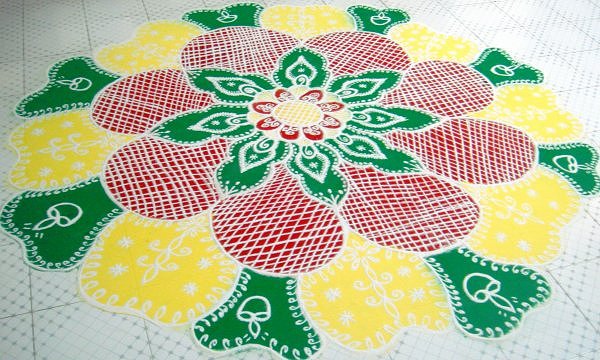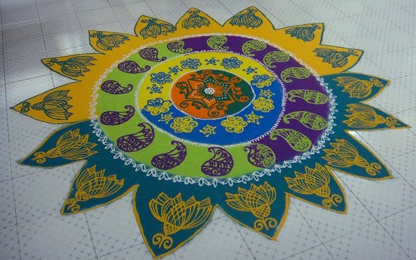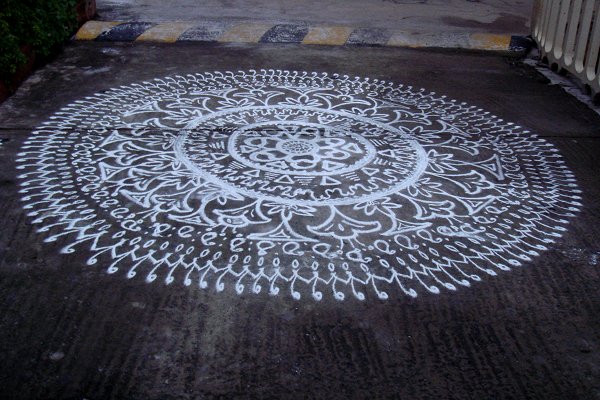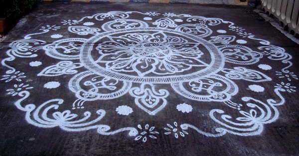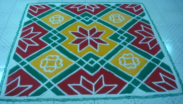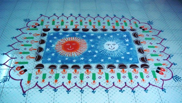 Rangoli and text by Lakshmi Raghu, Bharathi Bhaskar