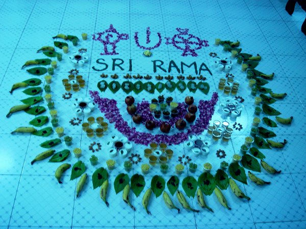 The kolams have been created using items offered to Sri Rama on Rama Navami Day.