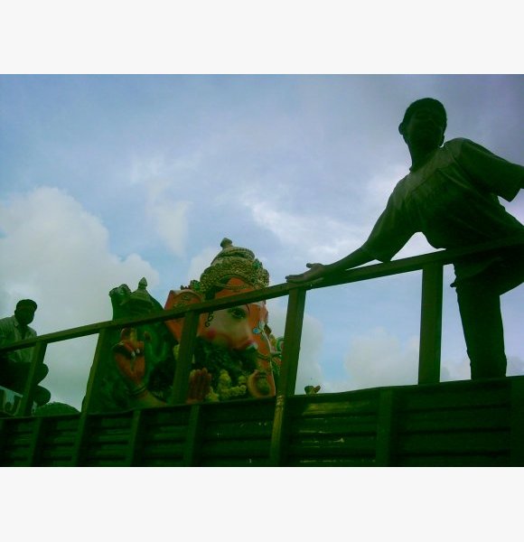 Ganesha idols. Depending on the size, the idols are brought to the beach
