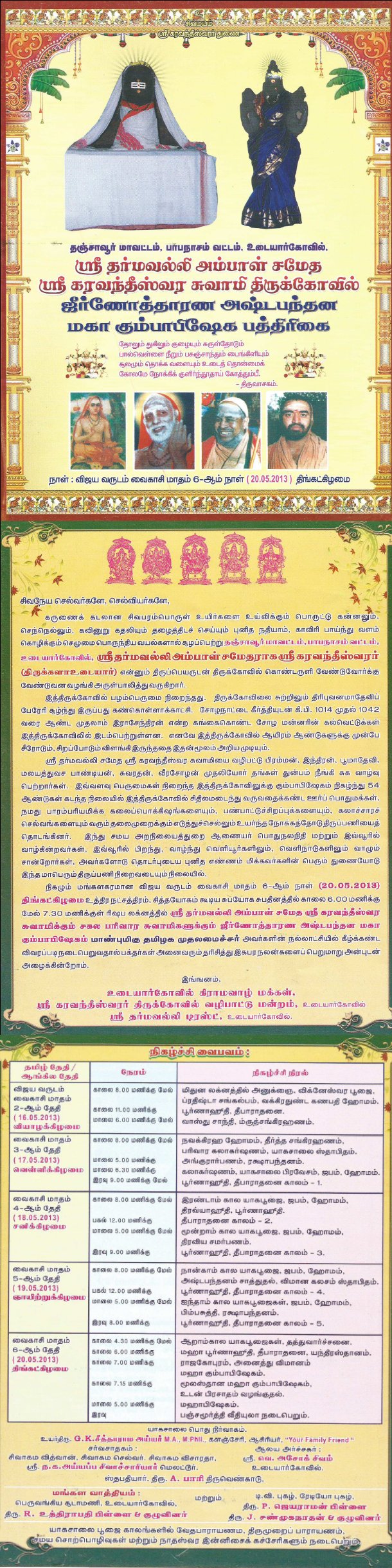 Mahakumbabishekam of Sri Dharmavalli Ambal samedha Sri Karavandheeswara Swami Thirukovil