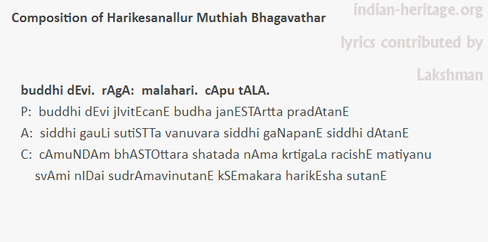 buddhi dEvi. rAgA: malahari. cApu tALA. - Composition of Harikesanallur Muthiah Bhagavathar