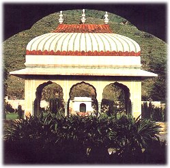 which is near Jaipur, lie the Chataries - memorials to the royal family