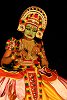 The Thullal artist uses native pigments, called manayola (yellow), chayillyam (red), neelam (blue) and mashi (black), mixed with coconut oil or water, for his facial make-up. He inserts a specially processed floral substance into the lower eyelids that turns the eyes red. This is perceived as adding to the aesthetic colour sensation and it cools the eyes. Thullal knows three different styles of performance: Seetangam, Ottan and Parayan. Seetangan has decorations freshly made out of tender coconut palm leaves, golden beads and broad white and red cotton flaps around the waist. The Ottan style, which will be shown in the Festival, does not use palm leaves. Its colourful ornaments are made out of light wood, gold foil, mirrors, golden beads and woolen fibers.