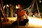 Aravaan reflects on how the blind King Dhrtarashtra has found an easy way out by escaping into introspection instead of looking at the injustices around him. Aravaan wants to test this escapist device and blindfolds himself. Blind to the world, he is able to face himself more clearly. His needs appeal to him with urgency. He decides to satisfy all his sensorial and carnal cravings to the fullest before he dies. Once intoxicated, he becomes aware of the presence of a sensuous woman. He claims her ravenously. Suddenly, he feels confused. Is this a man or a woman? Phantom or real? The smell of milk and butter........... Krishna? The sun rises and he faces death, the end of existence forced on him at a young age. He is led away and sacrificed.