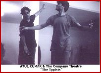 “The Typists” is an hour-long transformation scene in which one very simple, progressive image (actors ageing before our eyes) captures the futility of life better than many ambitious, full-length plays. The relentless decrescendo of the typists’ day is accompanied by all the fervent trivia, which are the language of our lives, and the condensation-device registers this with savage clarity. The play conveys an almost Chekovian sense of dulled routine and empty rituals and, like Chekov, it demonstrates the utter impossibility of acting upon profound personal perceptions which cry out for positive action. The psychoanalytic parlor game- I’ll tell you what is wrong with you- You tell me what is wrong with me- is played with brutal and unflagging regularity in all our modern circles where a couch is a piece of psychic rather than domestic furniture. And it is this sense of being trapped in the midst of total consciousness, which creates the pathos in the lives of Schisgal’s Typists. Very obviously inspired by the Theatre of the Absurd, the play takes a looks at our redundant human condition in a tragic-comic manner. Credits: